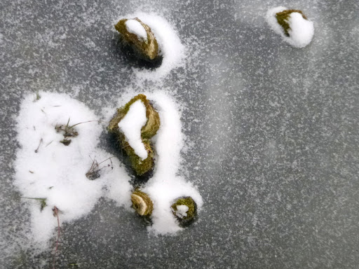 Na początek rzut okien na aktualny stan lodowy stawu na Bielniku. Dziś w parku stary, nieprzezroczysty lód, do tego przyprószony trochę śniegiem, brak lodowych arcydzieł, to nie utknąłem tu na dłużej.Trzech Króli? TrzechZająców? Nie, Trzech Kaczorów!