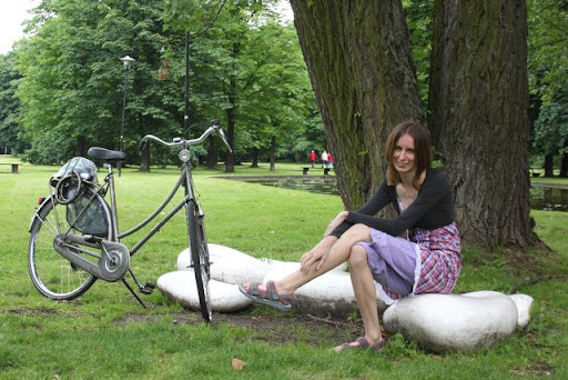 Warszawa (po Ochocie) - Żyrardówlavinka i jej nowy rower na kamykach na Polu Mokotowskim