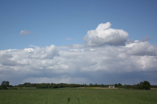 Jechało mi się coraz gorzej. A z tu nagle dorwała mnie ulewa za Nowym Dworem. Schroniłem sie pod drzewem... wkrótce zaczęło przeciekać, ale i deszcz zaczął przechodzić. No i pojawiła się tęcza.