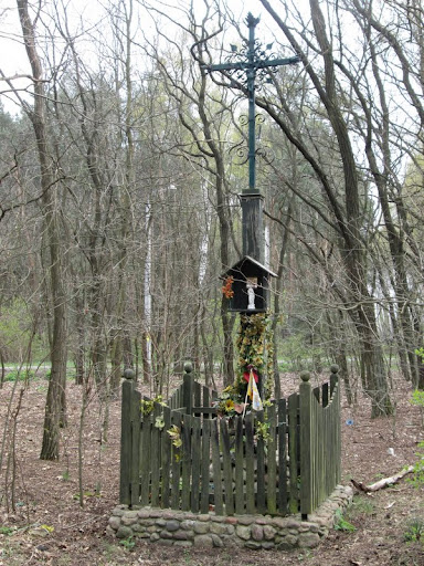 Krzyż upamiętniający motocyklistę, który zginął w wypadku... niby typowy widok przy drodze, ale krzyż jest jeszcze z okresu międzywojennego (KLIKnij w fotkę, by zobaczyć tabliczkę) .
