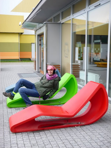 A potem pożyczyła od Mai rowerek (identyczny jak nasz, tylko żółty) i zrobiła parę rundek dookoła placu... i w poprzek. Chyba pora Klusce założyć w bikestatsie zakładkę "Pozycone Lowelki"