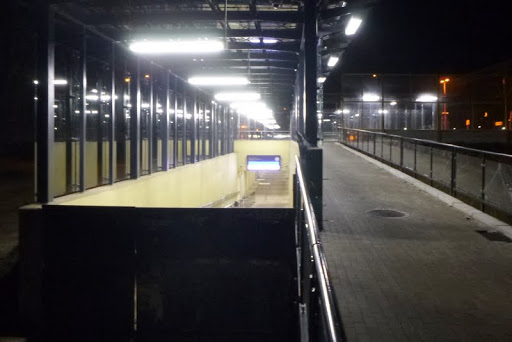 Myk na dworzec... a tu zdziwko, bo okazało się że świeżo otwarty tunel jest na powrót zamknięty. Tiaaa... długo to on był otwarty - tydzień? Z tej strony do przejścia na środkowy peron jest nieco ponad 100 metrów, ale idąc z drugiej strony torów to teraz najbliższe przejście przez tory jest z 500m dalej, a żeby dostać się na perony, trzeba jeszcze wrócić co najmniej 300.Od początku mieliśmy wątpliwości czy zastosowanie tych płyt szklanych to dobry pomysł. I proszę - już część jest potłuczona.