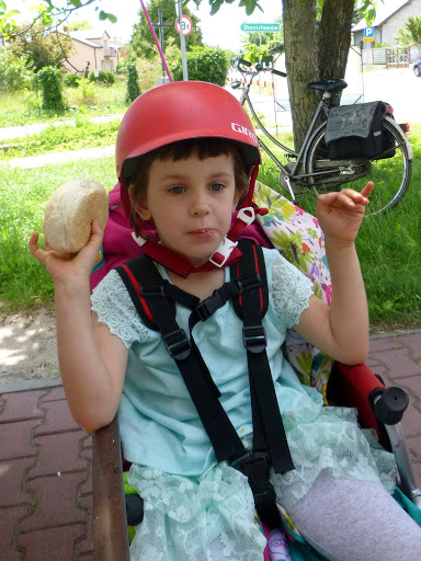 No i jesteśmy - tradycyjnie dekujemy się w głębokim cieniu w pobliżu muzycznego placu zabaw, który już nieco jest zdezelowany... Ze względu na słońce, na zmianę jedno z nas lata z Kluską, a jedno stygnie w cieniu.